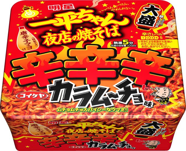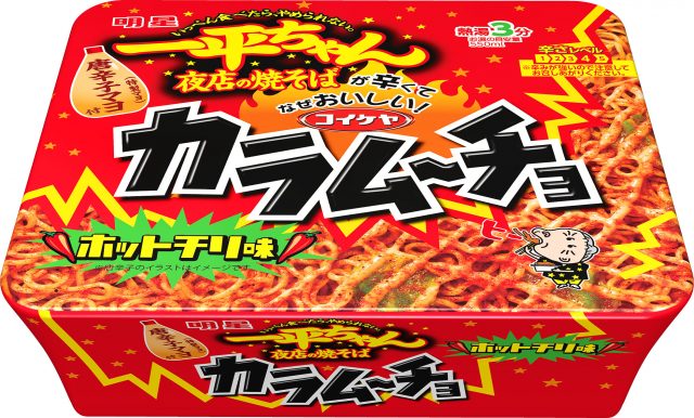 「明星 一平ちゃん夜店の焼そば カラムーチョホットチリ味」は、スパイシーな辛さと旨さがガツンとくる醤油ベースの辛口焼そばとなっています。昨年発売品よりも“スパイシーなウマさ!”になりました。
