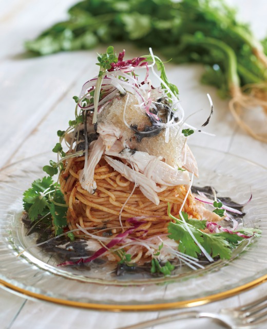 商品名:スノーアイスパスタ ~伊達鶏と野菜サラダ、自家製醤ソースの“黒胡麻担々麺風”スパゲッティ~