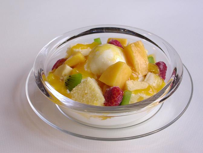 濃厚なマンゴーやバナナ、キウイフルーツとバニラアイス、さっぱりしたヨーグルトと甘みと酸味が絶妙なパフェ。