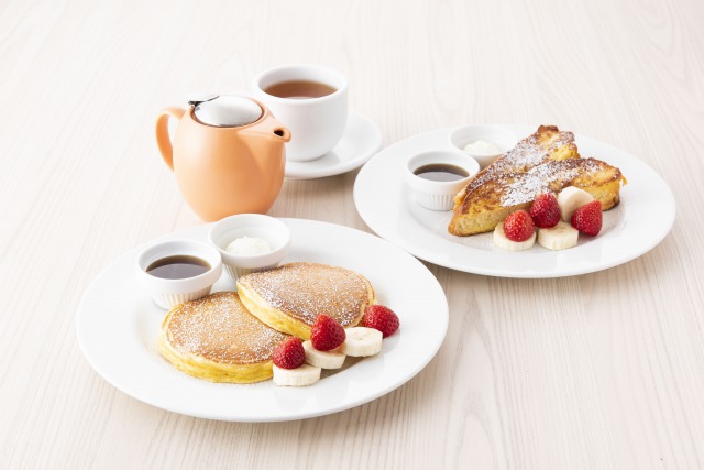 平日モーニングタイム(9:00~10:30LO)に登場するのは「ランバージャック モーニングセット」(1,450円・税別)。好きな卵料理(スクランブルエッグまたは目玉焼き)グリルベーコン、サラダ、ミニ・バターミルクパンケーキをワンプレートにし、ミニスープ、コーヒー又は紅茶をセットにした、朝のパワーチャージにぴったりなセットメニューとなっています。