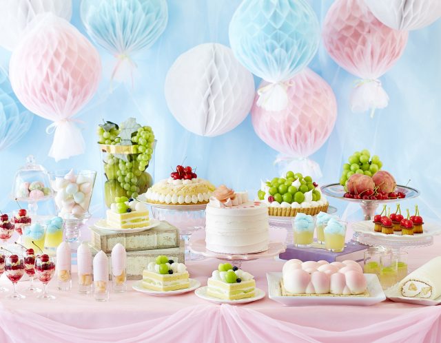 初めて開催する夏のスイーツビュッフェは、“ふわふわ&もこもこ”をテーマに、さくらんぼ・桃・シャインマスカットを中心として、メロンやマンゴーなど人気のフルーツを使った全25種類のスイーツが登場します。