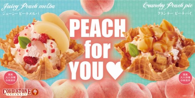 コールド・ストーン・クリーマリー・ジャパン株式会社は、2019年6月17日(月)より国内のコールドストーン店舗(一部店舗を除く)にて、初夏にぴったりの国産白桃(大久保種)を使用した『ジューシー ピーチ メルバ』と『クランチー ピーチ パイ』を発売します。