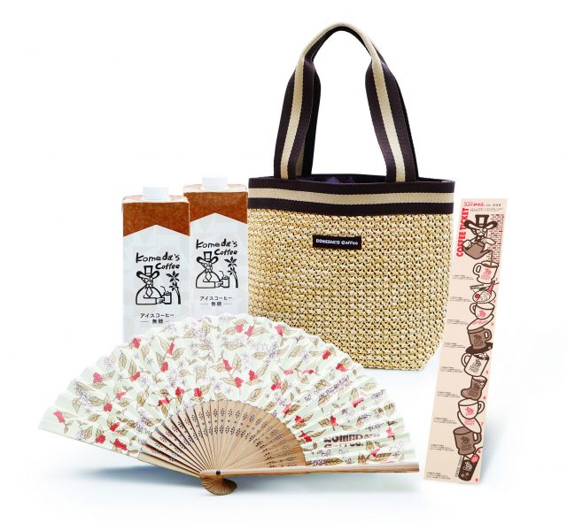 日頃ご愛顧いただいているお客への感謝の気持ちを込めて、夏にうれしい特別なアイテムを詰め込んだ、お楽しみ袋「サマーバッグ」を用意しました。夏らしいカゴ風素材のトートバッグや、コーヒーの花と実をモチーフにしたデザインの扇子は、ここだけの限定品。夏のお出かけにもぴったり、使いやすいアイテムとなっています。また、コーヒーチケット1冊と、お家で楽しめるすっきりとしたコメダのオリジナルアイスコーヒー2本も入っており、6,000~6,500円相当のアイテムがお得に手に入るようになっています。