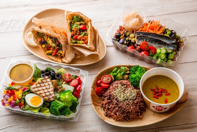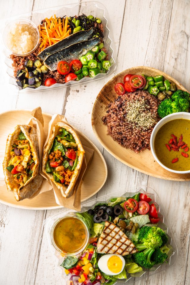 GOOD LIFE FACTORYの夏限定メニューは、オイルサーディンと夏野菜の和風サラダボウル「フィッシュパワー」、メカジキ入りのグリーンサラダ「イミューンアップ」、スパイシーな味付けのヴィーガンタコミート入りの「メキシカンヴィーガンピタサンド」、旬の野菜を添えた「夏野菜薬膳ココナッツカレー」の4品となっています。柑橘系のさっぱりした味わいのドレッシングやスパイス使いで、食欲を失いがちな時期でも食が進むヘルシーなラインナップを取りそろえました。夏に備える人におススメとなっています!