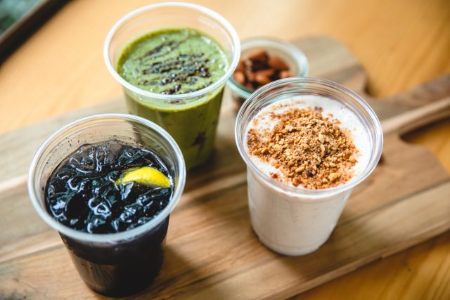 今年4月に発売したシェイク&レモネードが好評につきこの夏も続投!デトックス効果が期待できる竹炭を使用した真っ黒な「チャコールレモネード」、アーモンドミルクを使用し、濃厚な抹茶の香りと甘い黒蜜がアクセントの「アーモンド抹茶シェイク」、カリウム&ビタミンEたっぷり!栄養満点の「アーモンドバナナシェイク」、おいしくヘルシーな3品となっています。