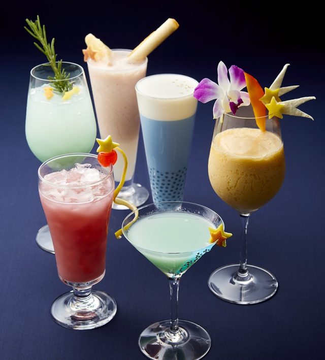 “「カルピス」コラボレーション 願いが叶うカクテルフェア”では、4種のカクテルと2種のノンアルコールカクテルを用意。バーテンダーが「カルピス」を使用し“七夕や天の川”から連想して個性豊かな1杯を創りました。「巨峰カルピス」とクランベリーを使用した鮮やかな赤が特徴の「織姫」や、「白桃カルピス」と白桃を使った「ミルキーペシェ」、いまSNSで人気の青いお茶「バタフライピー」とタピオカで、“天の川”をイメージしたノンアルコールカクテルなど、七夕に想いを馳せながら、お気に入りの1杯を味わえるようになっています。
