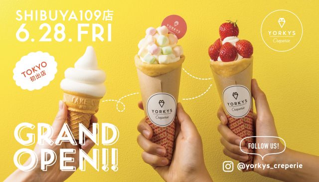 2014年、閑静な住宅街【夙川】で生まれたカフェYORKYS BRUNCH。口コミやSNSでじわじわと人気を集め、関西に話題店をプロデュースしてきた株式会社Yorkys Entertainmentがついに関東へ進出!!待望の関東初出店は渋谷のランドマークSHIBUYA109!地下2Fの食べ歩きを切り口とした新しい食のフロア「MOG MOG STAND(モグモグスタンド)」オープンに伴いクレープ専門店YORKYS Creperie SHIBUYA109店をグランドオープンします。