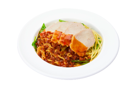 商品説明:にんにくとショウガ、唐辛子の刺激的なスパイスがピリリと効いた担々ソースに、ヘルシーなサラダチキンをたっぷり乗せたボリューム満点の冷やし麺となっています。練りごまのコクのある風味と、ピリっとした辛みがバランス良く楽しめるようになっています。