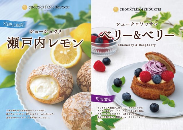 株式会社麦の穂は、シュークリーム専門店シュクリムシュクリにて期間限定で夏に食べたい爽やかなシュークリーム“シューシュクリ 瀬戸内レモン”、“シュークロワッサン ベリー&ベリー”の2つの新フレーバーシュークリームを2019年7月1日(月)より発売します。
