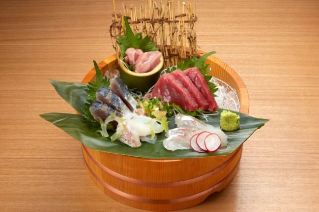 お刺身盛り合わせ・・美味しい旬のお魚や朝採れた鮮魚を漁港から直送。2100円