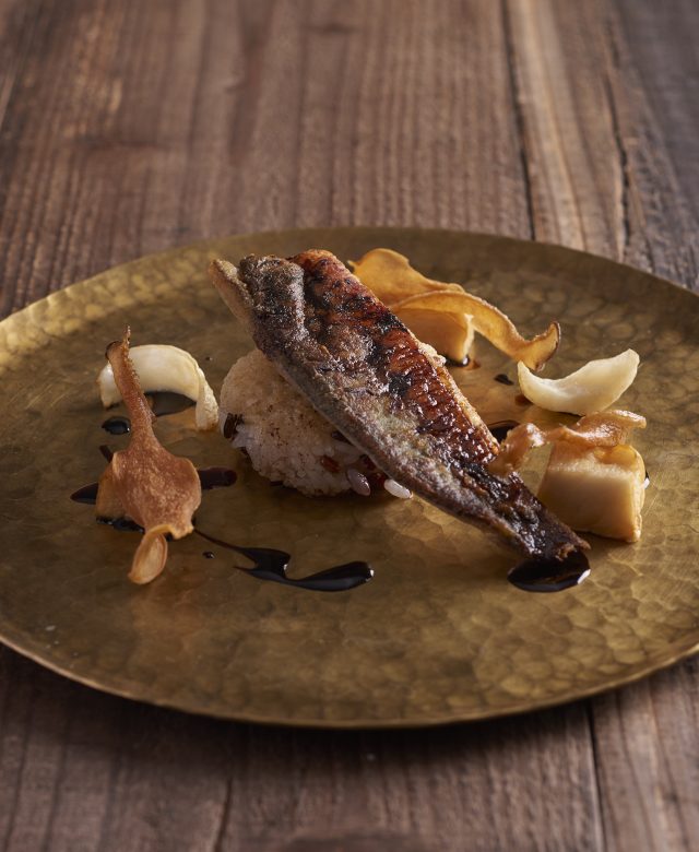 ・ウナギのポワレとお米のガレット 赤ワインバルサミコソース