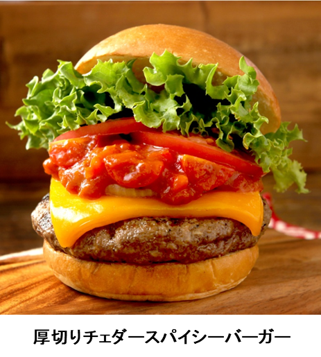 スパイシーシリーズは全部で3種類。厚切りのレッドチェダーチーズが楽しめる「厚切りチェダースパイシーバーガー」は、チーズのコクが特製スパイシーソースと相性抜群。