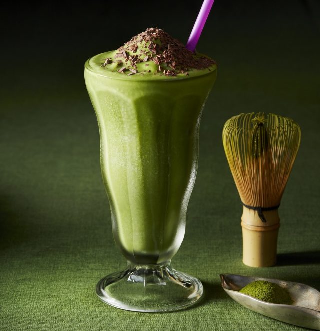 「抹茶リスタ(SHAKE)」は、香り高く旨み深い京都府産の宇治抹茶を使用した濃厚なフローズンドリンクで、クリーミーな口あたりと、奥深くすっきりとした味わいをひんやりシェイクで楽しめるようになっています。仕上げに散りばめたクーベルチュールチョコレートチップの食感とビターな味わいが、宇治抹茶の心地よいほろ苦さを引き立てるようになっています。