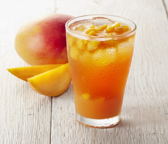 同日より発売の「&TEA パッションピーチ&マンゴーティー」は、ベルガモットの爽やかな香りのアールグレイアイスティーに、ピーチ果汁と酸味と香りが特長的なパッションフルーツ果汁をブレンドし、甘酸っぱくフルーティーな味わいに仕上げました。とろりとしたマンゴー果肉の、まろやかな食感と共に楽しめるようになっています。