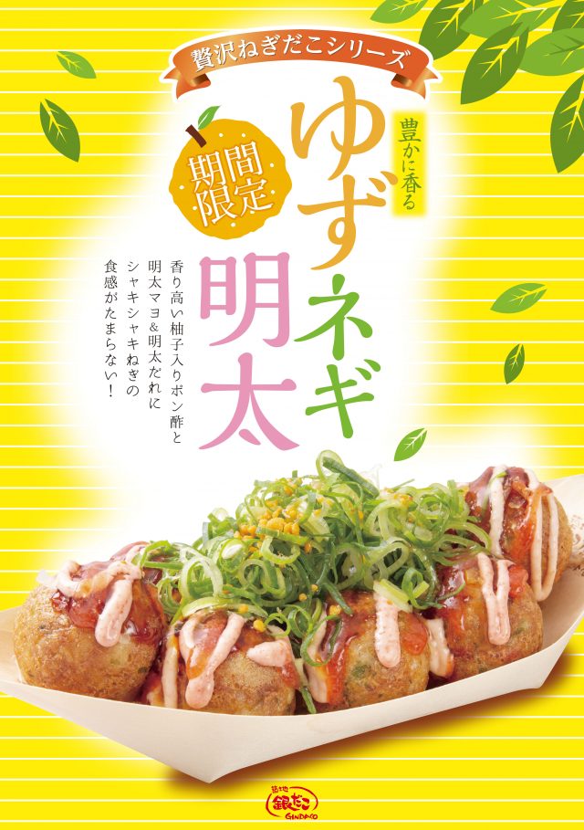 築地銀だこを展開する株式会社ホットランドは、2019年7月18日(木)より全国の築地銀だこ(一部店舗を除く)で、新作 『ゆずネギ明太』 を発売します。