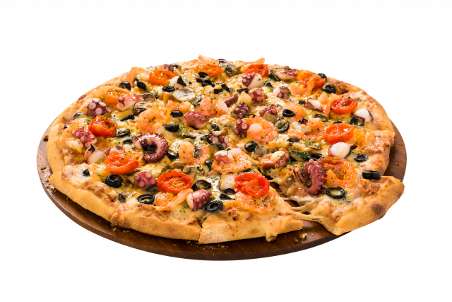 使用食材:アヒージョソース、タコ、エビ、チェリートマト、マッシュルーム、ブラックオリーブ、パセリ、トマトソース