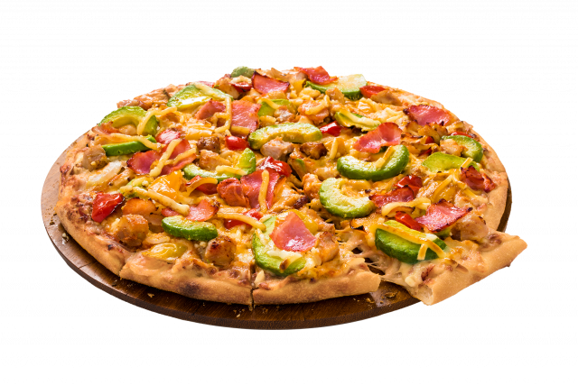 使用食材:ローストチキン、アボカド、マヨネーズ、パプリカ、オニオン、燻しベーコン、トマトソース