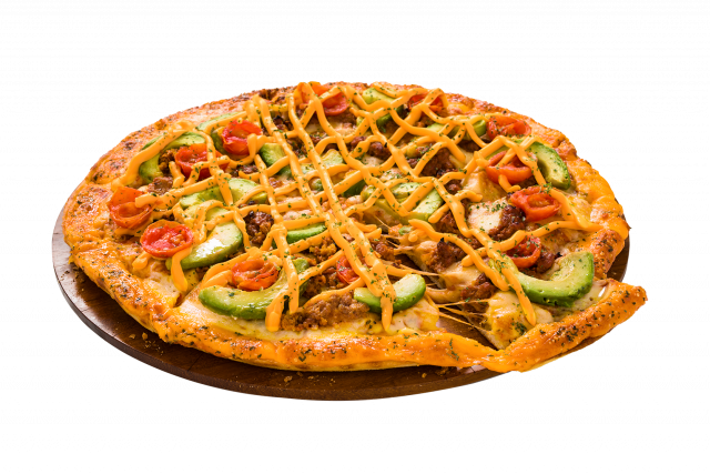 使用食材:タコスミート、アボカド、チェリートマト、チェダーソース、パセリ、トマトソース