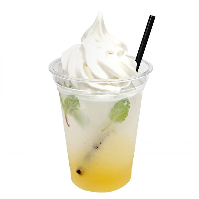 レモンスカッシュにミルキーなソフトクリームをのせたスペシャルドリンク。