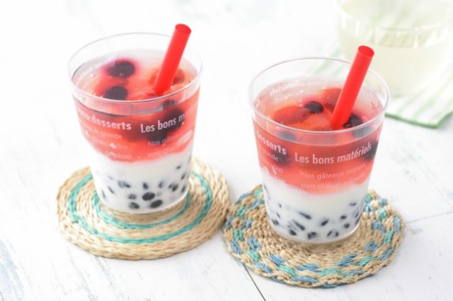 タピオカ入りがうれしい、ストローで飲めちゃう、さっぱりのどごしの良いカップスイーツ。
