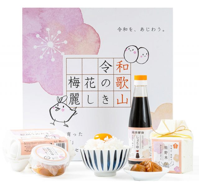 「紀州うめどり 卵かけごはんセット」は、そんな万葉集や梅とつながりの深い「令和」という時代を私たちなりに祝いたいという想いから生まれた、和歌山生まれの食材を詰め合わせた卵かけごはんセット。