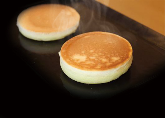 商品開発のテーマは、“今まで食べたことが無いほどの、幸福感が味わえるパンケーキを作ろう”でした。長い年月をかけて商品開発したパンケーキは、美味しさ・ふわふわ感・提供時間・状態の維持を全てクリアするために、1グラム単位で材料を配合しています。たっぷりのメレンゲを使った、日本一ふわふわしたパンケーキが完成したと自負しています。