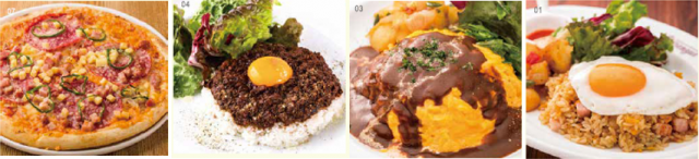 その他にも、メレンゲオリジナルのスペシャルフードは、馴染みのある、「オムライス」、「スパイシードライカレー」や、皆でわいわいシェアすることができるPIZZAメニューなども取り揃えています。