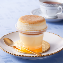 内容:北海道産牛乳を使用した、とろけるようにやわらかなミルクプリンに、焼き色がつかないようにふんわり・しっとり焼き上げたまっ白なミルクスフレを丸ごと1つのせ、スフレとプリンの間には、ホイップクリームと練乳ソースを挟みました。涼し気な見た目とやさしいミルクの味わいが特長となっています。