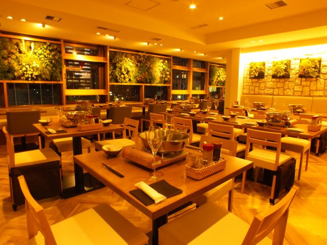 店内は緑を多く配した明るい空間。併設された漢方薬店には専任の薬剤師がおり、カウンセリングや漢方の処方もしています。広い店内は最大70名まで利用できるようになっています。各種ご宴会やイベント利用、記念日や普段のお食事にゆっくりと楽しめるようになっています。