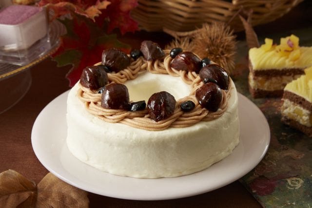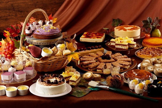 秋の豊潤な味わいを代表する「いも」と「くり」に加えて、柿や梨、ぶどう等の季節の果物を使用したスイーツ約20種類を用意します。好きな大きさにカットできる「マロンのショートケーキ」や見た目も鮮やかな「紫いものモンブランタルト」やカップデザート各種に、素材のマリアージュが楽しめる「柿とチョコレートのタルト」「マロンの米粉シフォンケーキ」等、秋を感じるスイーツがブッフェボードに並びます。