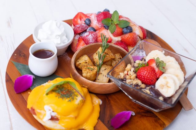 本店にはない、ワンプレートでハワイの朝の味が3つも楽しめるとっても贅沢なモーニング。