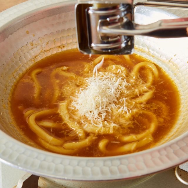 さらに、9種類の色鮮やかな夏野菜も食べ放題となっています。〆は、旨味の出たカレー鍋にうどんを投入する、”カレーうどん”!チーズをかけて。