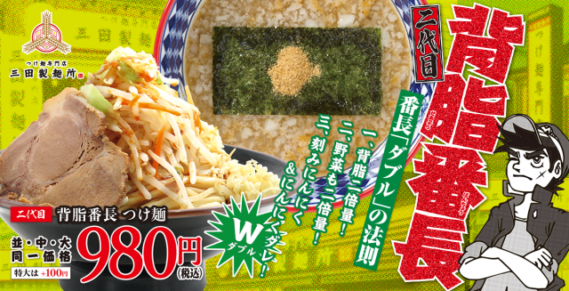 初代からパワーアップ!つけ麺専門店 三田製麺所に「二代目 背脂番長つけ麺」が期間限定で登場