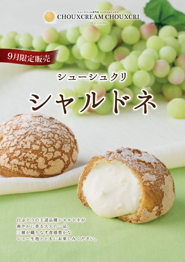 株式会社麦の穂は、シュークリーム専門店シュクリムシュクリにて期間限定シュークリーム“シューシュクリ シャルドネ”を2019年9月1日(日)より発売します。