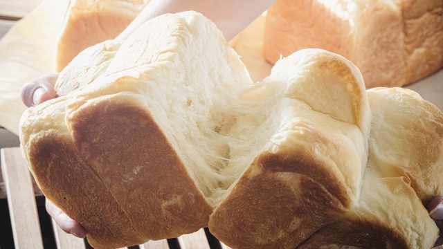 サニーベッカリーの生食パンは、北海道十勝の「ゆめちから」という国産小麦粉100%で作っています。普通の食パンは数種類の小麦粉をブレンドして作るところを、小麦そのものの風味を味わってもらうために、「ゆめちから」のみを使って食パンを完成させました。「ゆめちから」は、小麦粉の中でも、より粘り気の強いものです。粘り気の強い小麦粉は、パンの製造が非常に難しい――これがこれまでのパンづくりの常識でした。なぜなら、通常の作り方だと、ふっくらふわふわにならず、黒パンのように固くなってしまうからです。サニーベッカリーは、その困難さにあえて挑み、粘り気の強い「ゆめちから」のみで美味しいパン作りにチャレンジし、3種類の「生食パン」を開発しました。