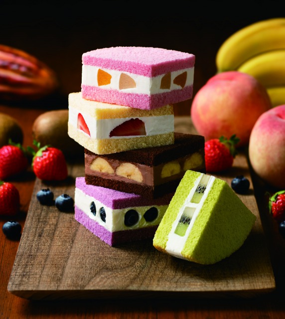 カラフルな見た目がかわいい、ワンハンドで気軽においしく食べられるフルーツサンドケーキ。