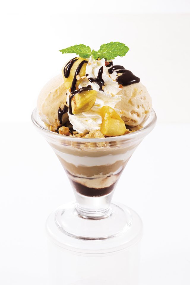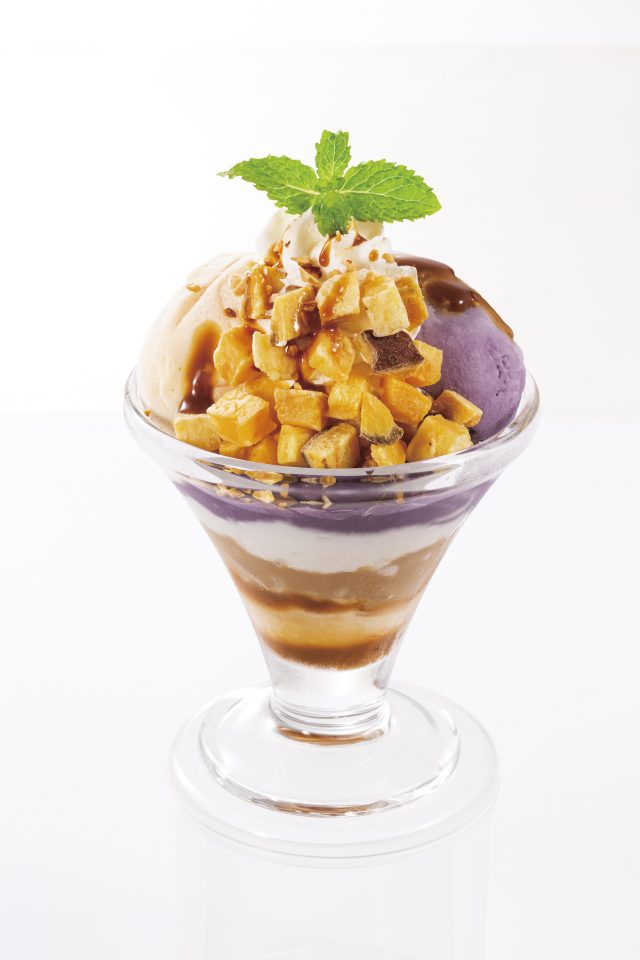 食後にぴったりサイズのミニパルフェは、芋・栗・かぼちゃそれぞれのアイスやクリームを使用し、素材の魅力を際立たせた3種類の仕立て。トッピングした芋や栗、かぼちゃの食感も楽しく、最後まで飽きずに戴くことが出来ます。