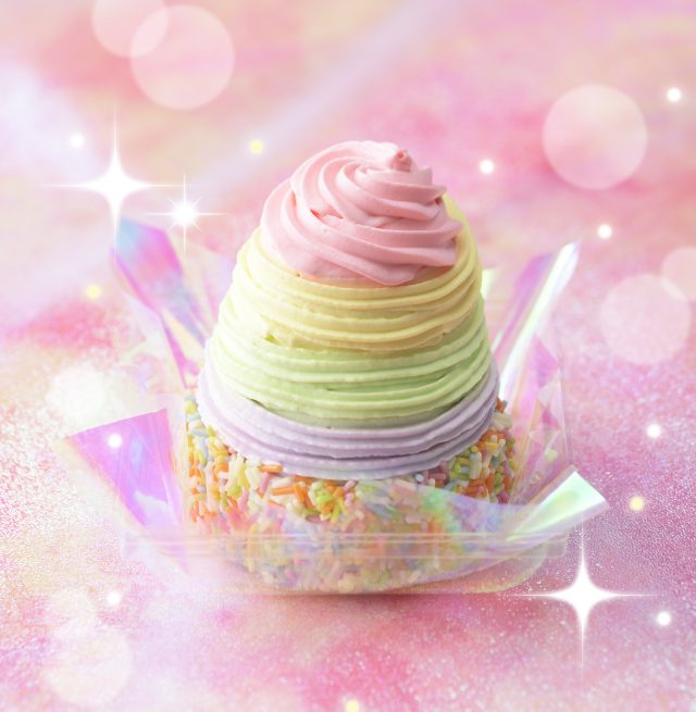 期間限定!女の子に人気の“ゆめかわいい”をテーマにした、魔法じかけのカラフルモンブラン♪いちご・レモン・メロン・ブルーベリーのレインボークリームを食べていくと、シュークリームやパチパチクラムのうれしいサプライズが!