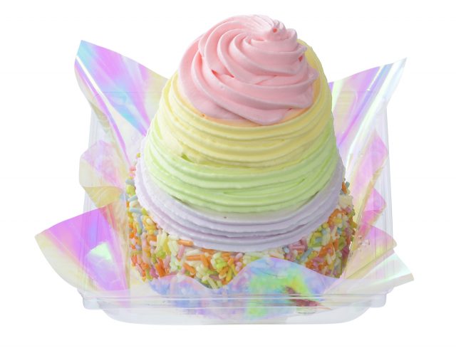 いちご・レモン・メロン・ブルーベリーのレインボークリームを食べていくと、シュークリームやパチパチ弾けるポッピングキャンディーに出会う、とっても楽しいモンブランとなっています。