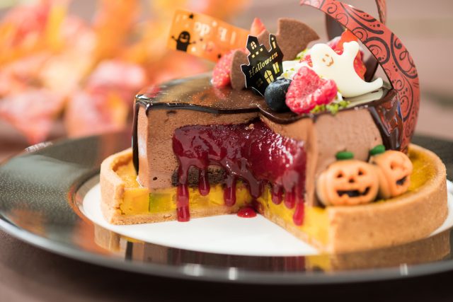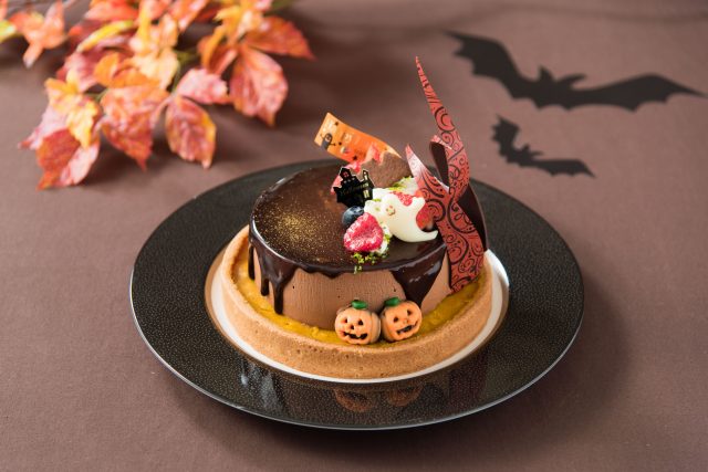 近年は大人の女子会やファミリーイベントとしても盛り上がりを見せているハロウィン。今年はハロウィンパーティーにぴったりのフォトジェニックなケーキを用意しました。香ばしくしっとりと焼き上げたパンプキン入りキャラメルタルトの上に、チョコレートムースを重ね、ジャック・オ・ランタンやお化け、こうもりのチョコレートをデコレーション。カットするとチョコレートムースの中に忍ばせた血のような色合いのフランボワーズソースがお目見え。ハロウィンのパーティーシーンを盛り上げます。