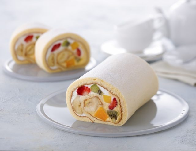 ■商品説明:レストランのデザートから生まれた、パティスリー キハチを代表する「キハチトライフルロール®」。甘みと酸味のバランスや彩りを考えて選んだ、苺、バナナ、キウイ、パパイヤ、マンゴーの5種類のフルーツ、選び抜いた卵や牛乳などを使い、深い味わいとなめらかな口どけにこだわったディプロマットクリームやシャンティーとともに、しっとりふんわり仕上げた生地でロールにしています。