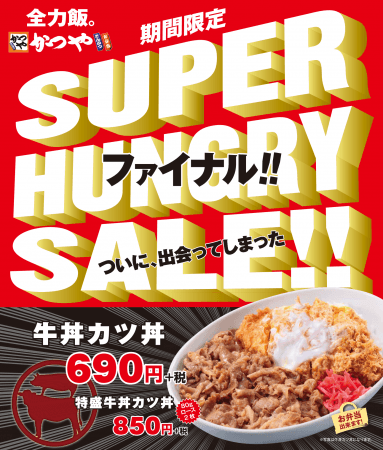 とんかつ専門店「かつや」を展開している株式会社かつや(本社:東京都千代田区/代表:伊藤 永)は、10月11日(金)から「かつや」国内店舗にて”SUPER HUNGRY SALE”ファイナルを実施します。