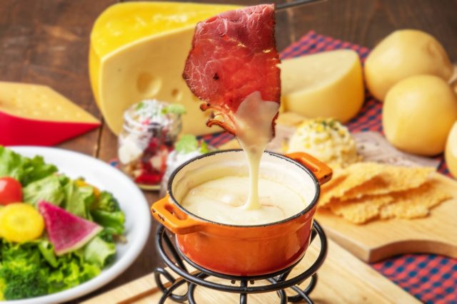 チーズフォンデュとローストビーフなど肉3種が食べ放題!スイーツ付き♪2時間食べ飲み放題プラン