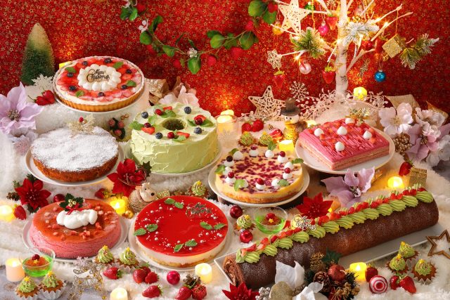 今年のクリスマスは「いちご」をテーマに、クリスマス限定の10種類のスイーツや、期間限定のフード・ドリンクメニューを用意。クリスマスカラーのメニューがショーケースを華やかに彩ります。