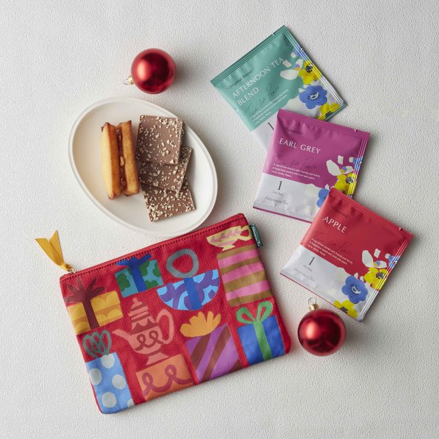 テキスタイルデザイナー・鈴木マサルさんがパッケージを手がけるクリスマスを彩るギフトアイテムが登場します。毎年大好評の「ブックオブクリスマスカレンダーティー」は、クリスマスイブまでの毎日を日替わりで楽しめる24種類のお茶のセット。クリスマス限定の紅茶や、この商品にしか入っていない限定紅茶、フレーバーティーなども楽しめるようになっています。また、パッケージにはオリジナルティーレシピ、紅茶の豆知識、クリスマスの由来など、日替わりのミニストーリーが付いています。