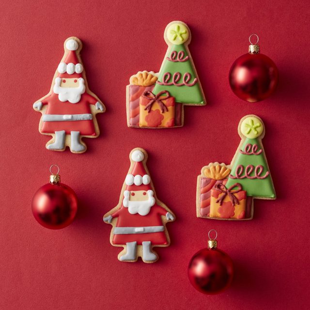 商品説明:ツリーとプレゼントをかたどったアイシングクッキー。この時期のプチギフトにぴったりとなっています。