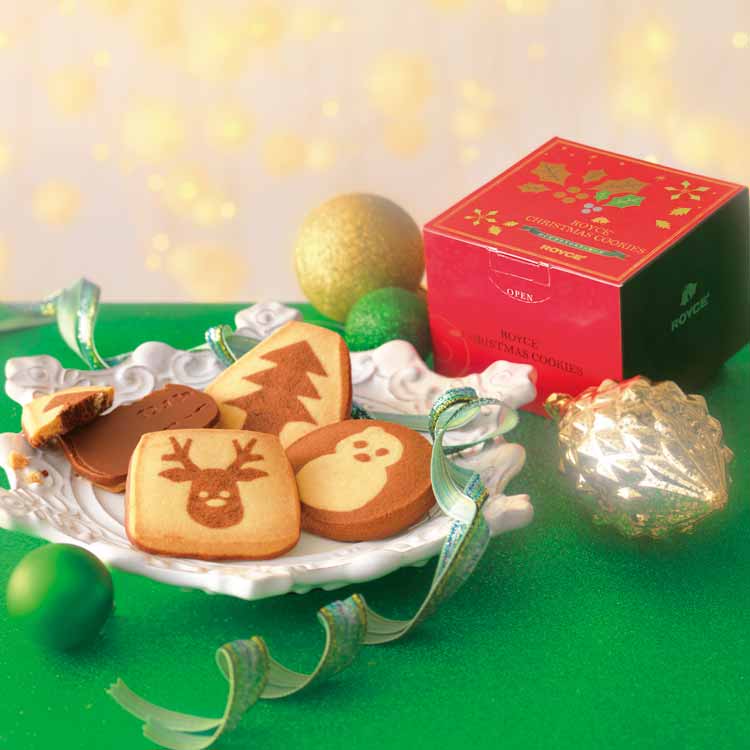 クリスマスをモチーフにしたかわいい絵柄が毎年人気のクリスマスクッキーズが、今年は新しい絵柄になりました。香ばしく食べ応えのある厚みのクッキーの片面に、すっきりとした甘さのチョコレートをコーティングしています。