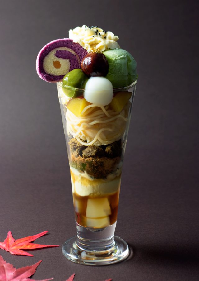 茶寮都路里(さりょうつじり)は、11月1日より、祇園本店限定メニュー「秋麗」と、伊勢丹店限定メニュー「秋景色」の提供を開始します。おいものロールケーキや、モンブランクリームなど、秋を感じる食材を使用した季節限定のパフェを楽しめるようになっています。