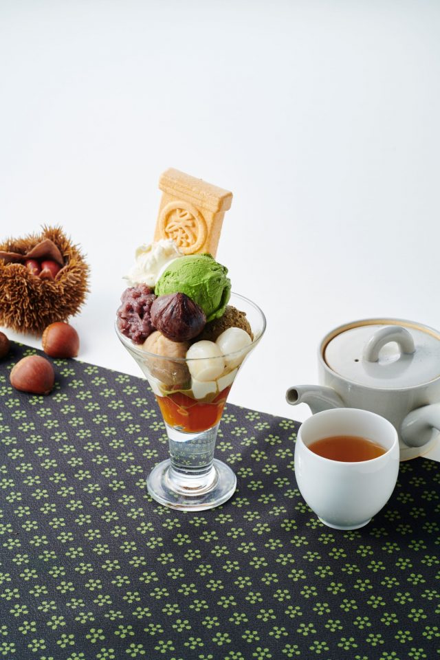 〇季節のパフェ(栗)とほうじ茶のセット なんば店限定 1,690円