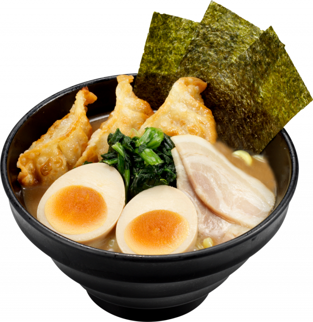 『ゼンブのせトッピング家系ラーメン』は、味玉にくわえ、香ばしい香りが食欲をそそる揚げ餃子をトッピング。ボリューム満点で美味しさ無限大な『吉祥寺 武蔵家監修 家系ラーメン』の魅力を感じられる一品です。